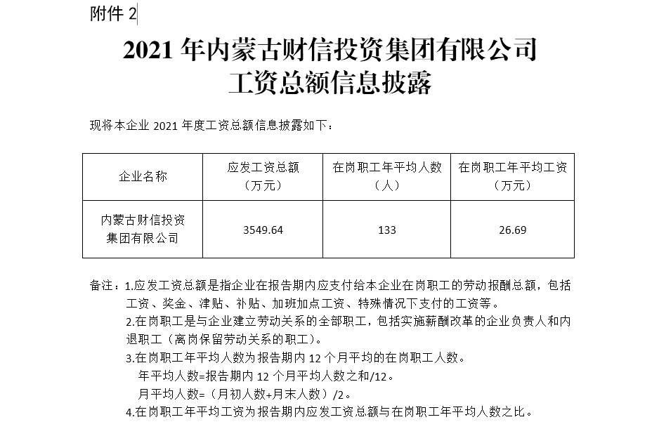 2021年內(nèi)蒙古財(cái)信投資集團(tuán)有限公司 工資總額信息披露